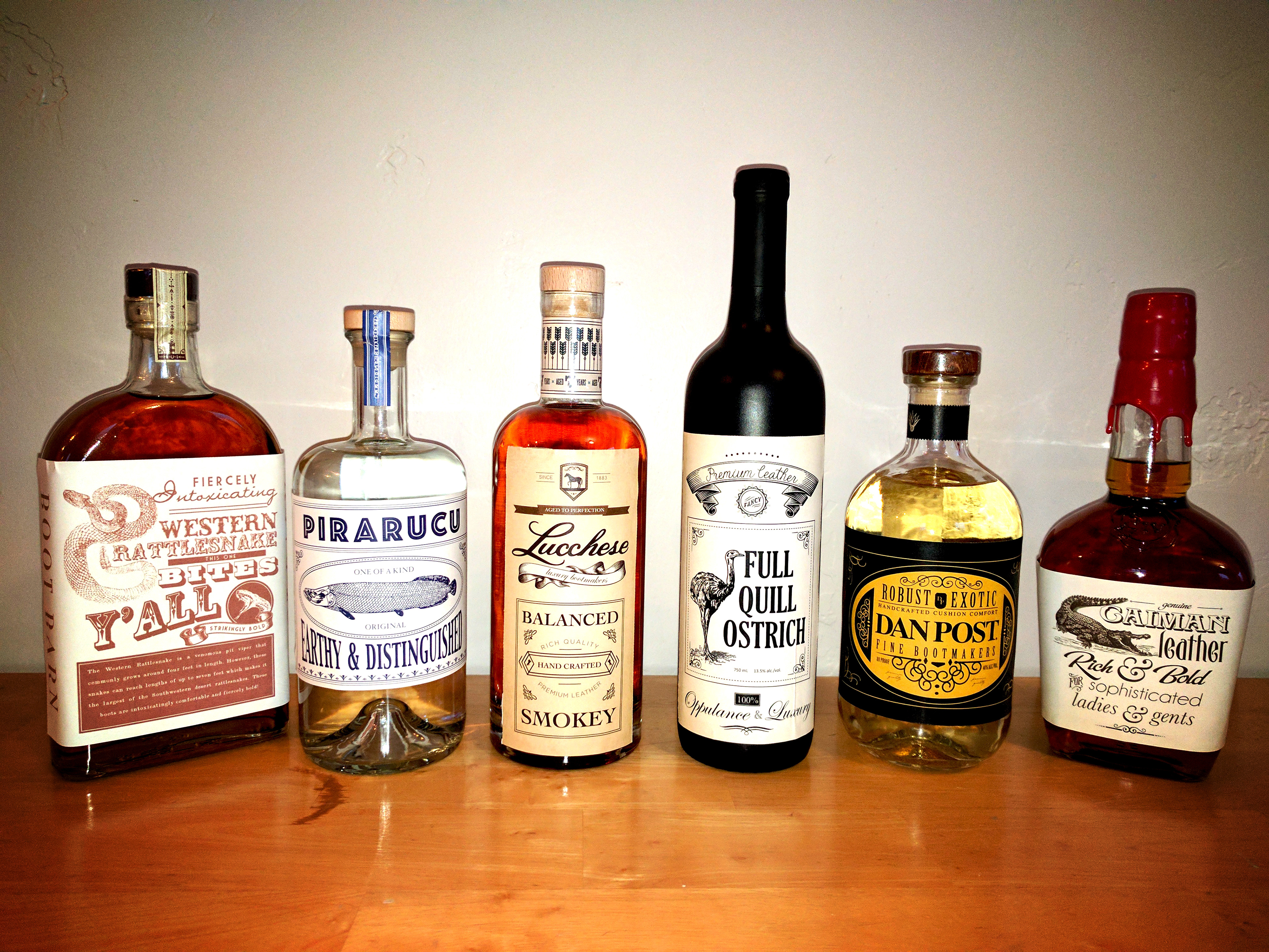 Boot Bottles for the Boot Bar booth at Houston Trade Show for Boot Barn. Wanted to make each bottle represent a popular boot that the company sells.