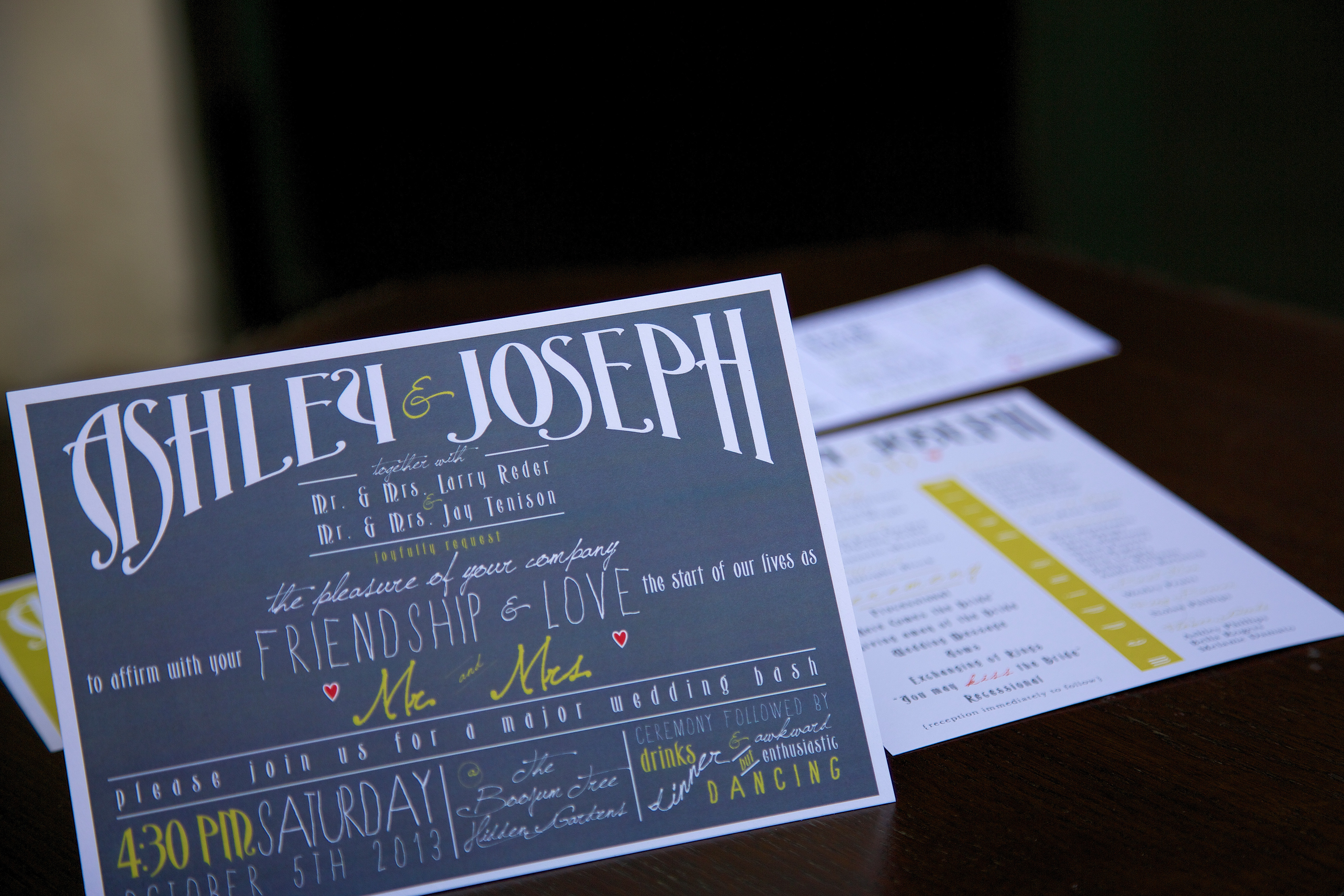 Typography and fun wording are center stage for this playful invites.